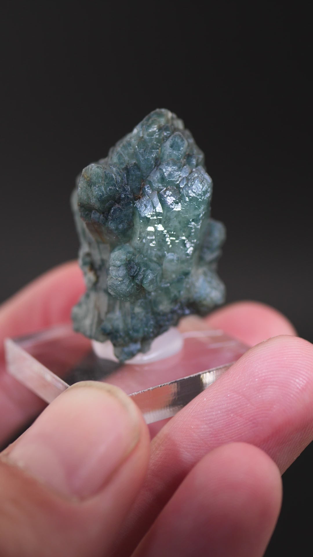 Actinolite in quartz cluster. Nice bluish green color and terminations.