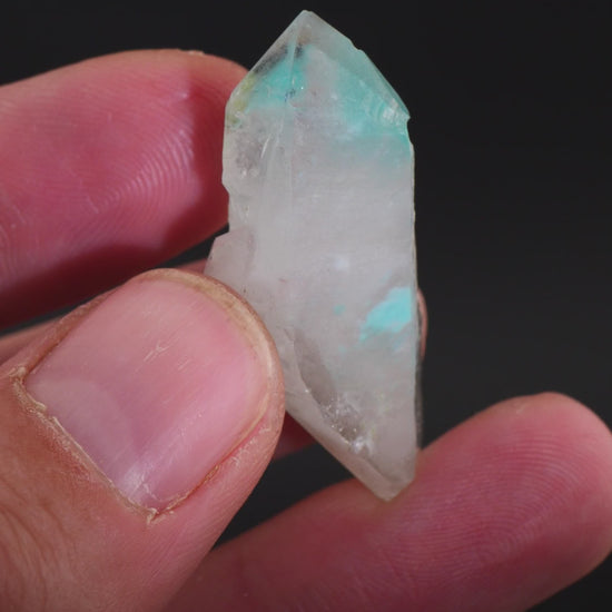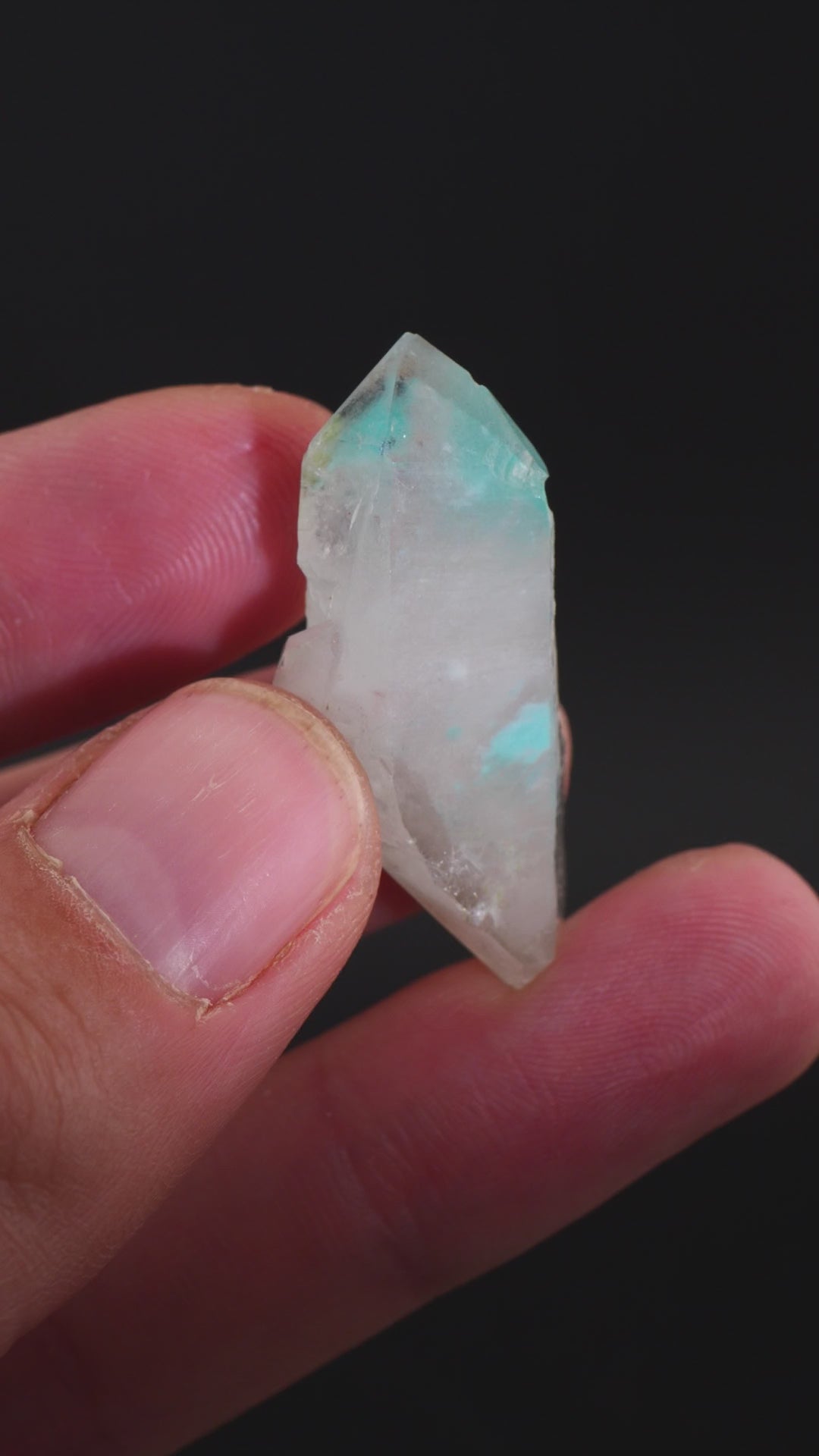 Double terminated quartz with bright color ajoite inclusions. Aesthetic example of this popular inclusion in quartz.