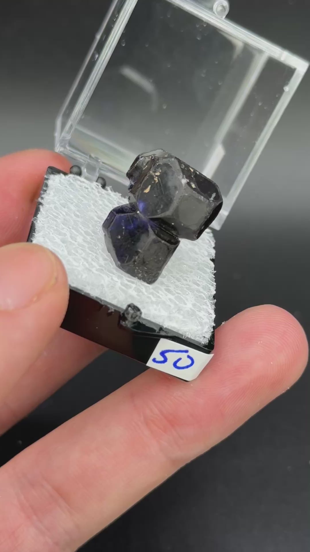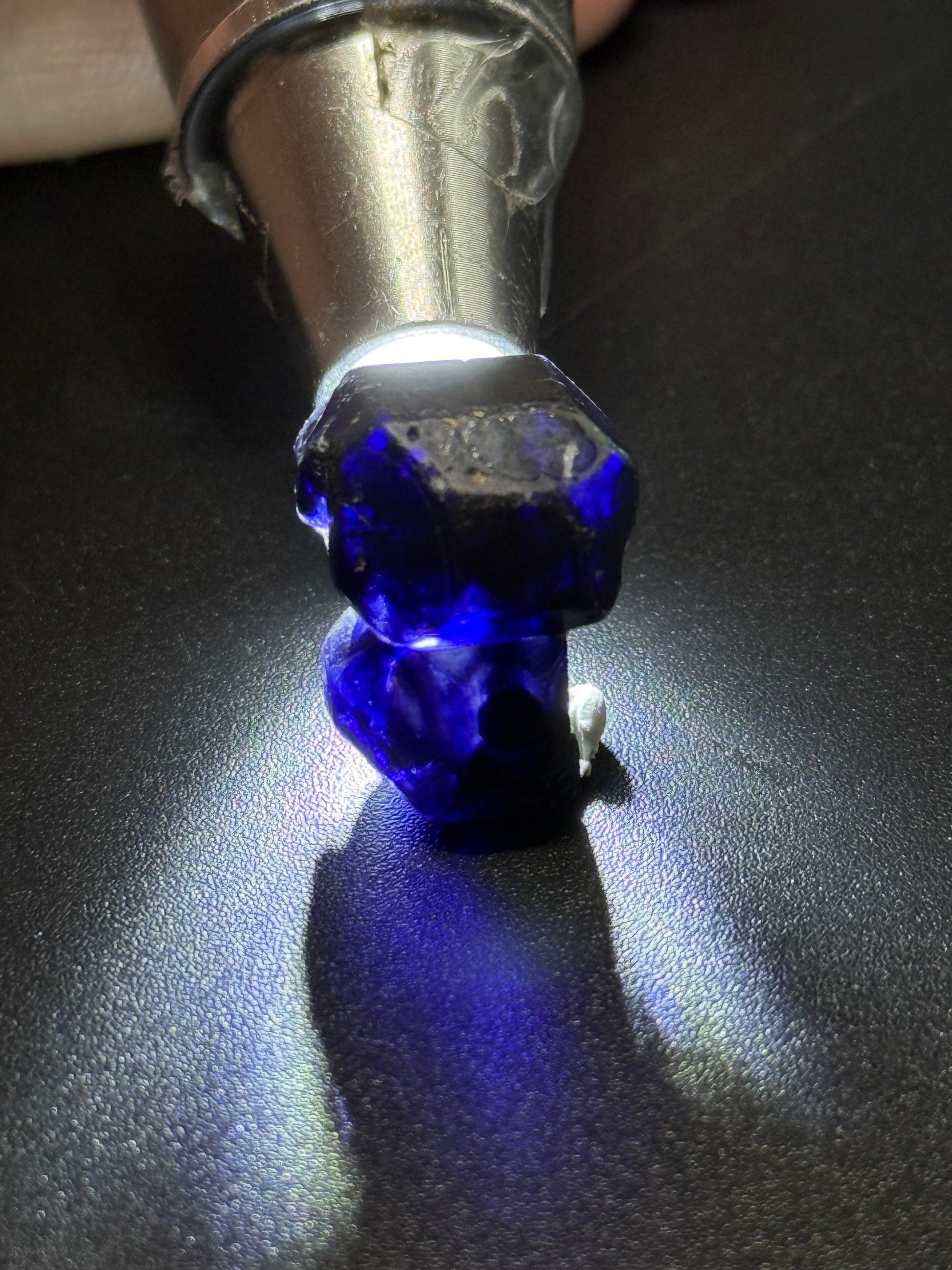 Crystal changes color from blue to purple in fluorescent vs incandescent light.