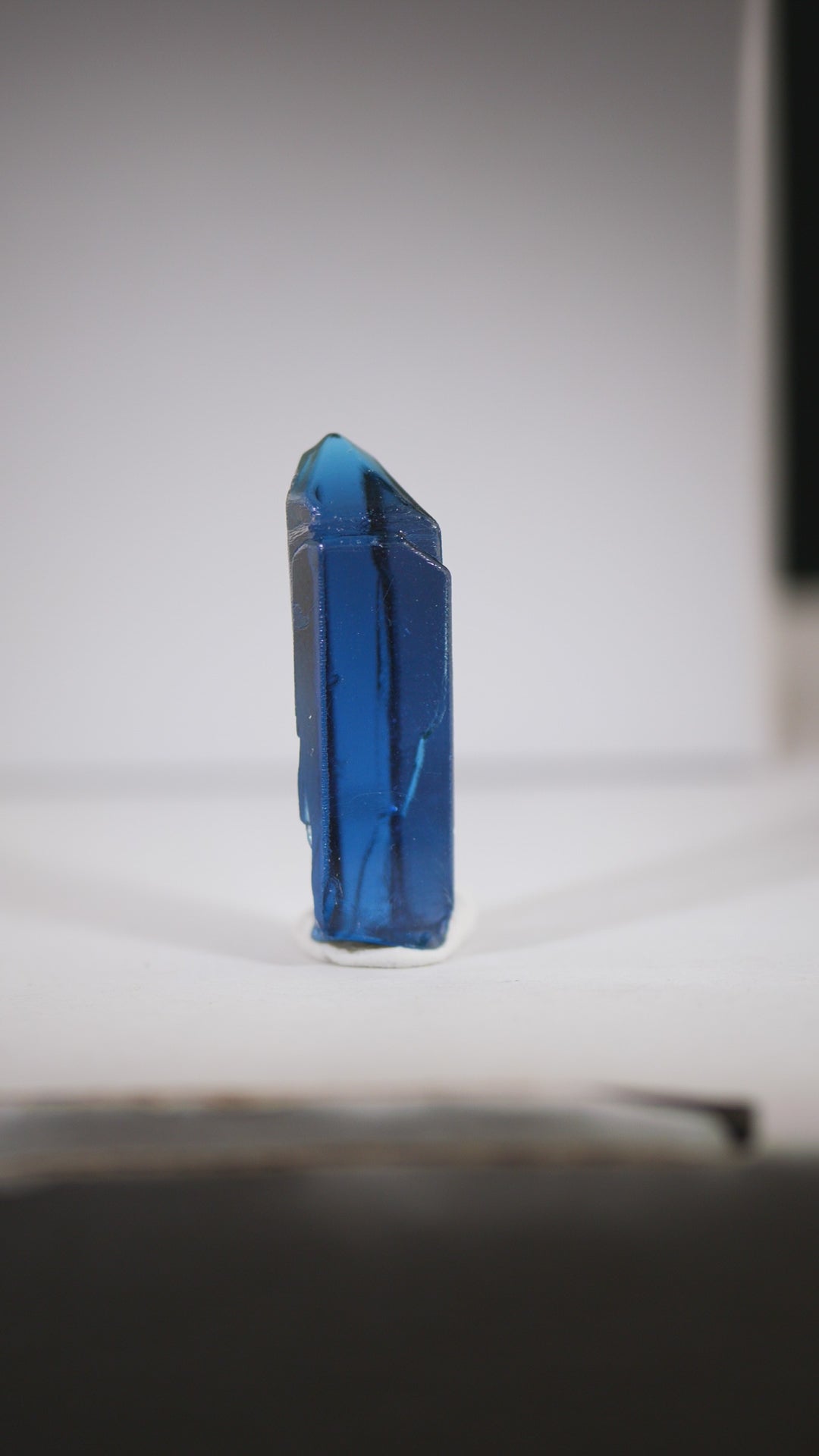 Beautiful gem fluoraptite from Myanmar/Burma. This find in the early 90s produced some of the highest quality gem apatite found. Great example of blue apatite in the video the specimen is shown with a polarizing filter to show the strong pleochroism of the specimen.