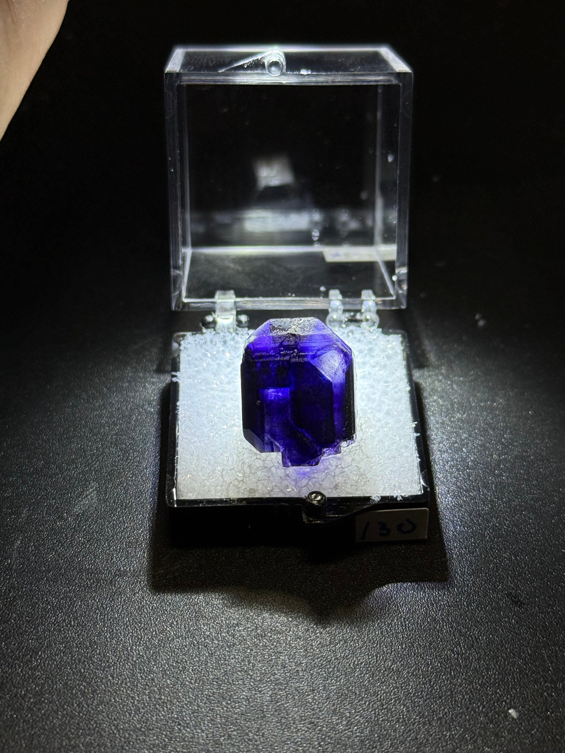 Crystal changes from blue to purple in fluorescent vs incandescent light.