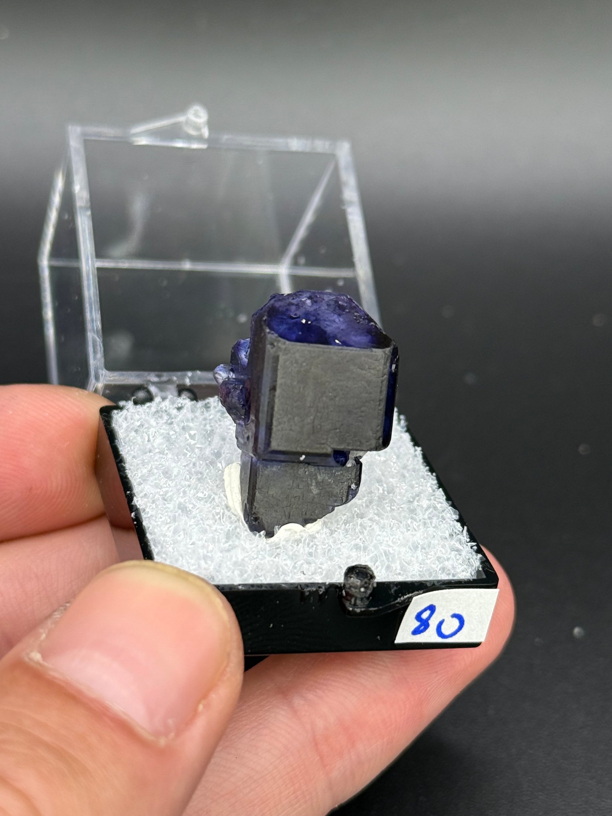 Fluorite from a recent find in Argentina. Two cubic purple crystals with blue zoning.
