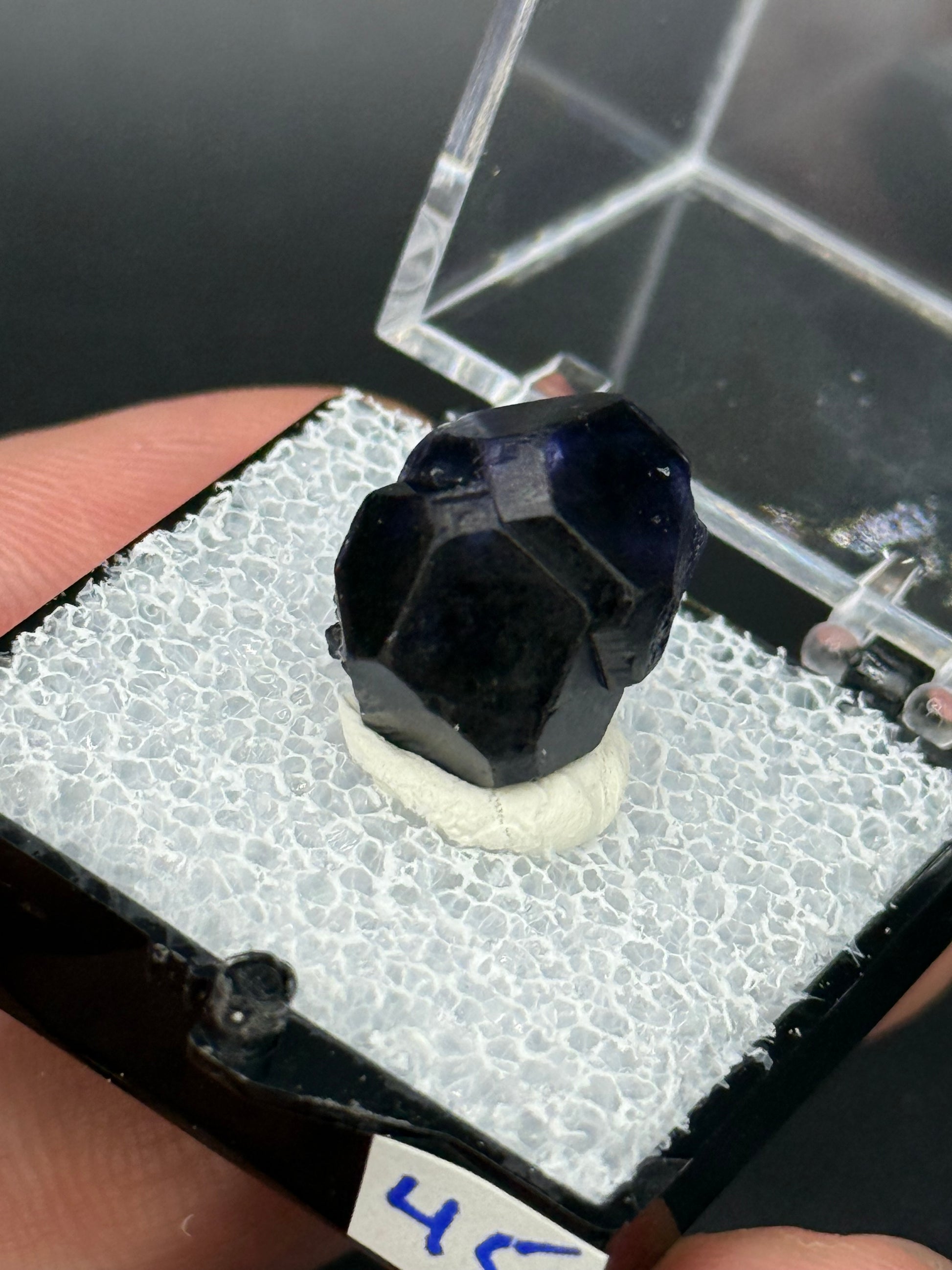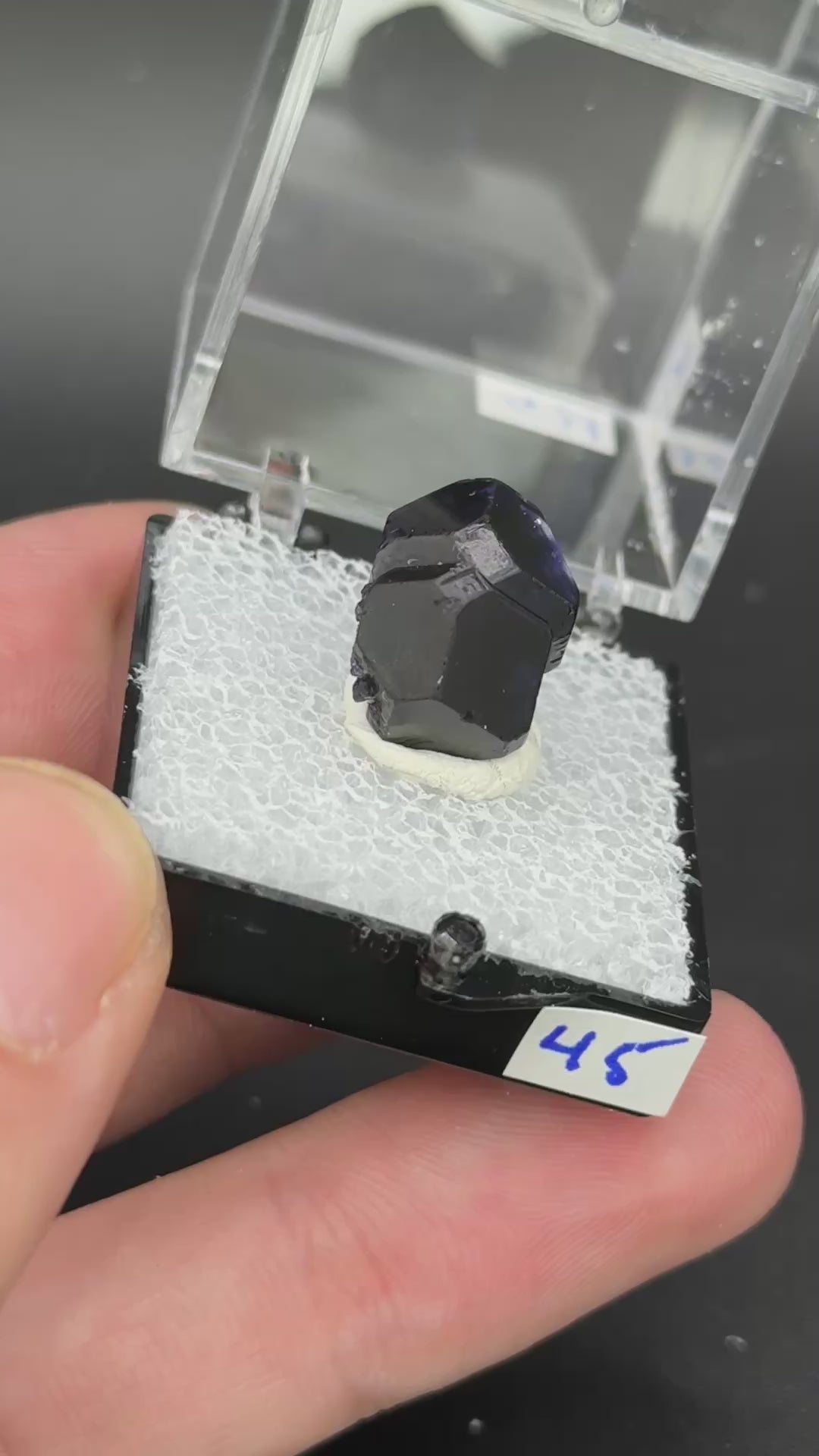 Fluorite from a recent find in Argentina. Two inter grown dark purple fluorite crystals.