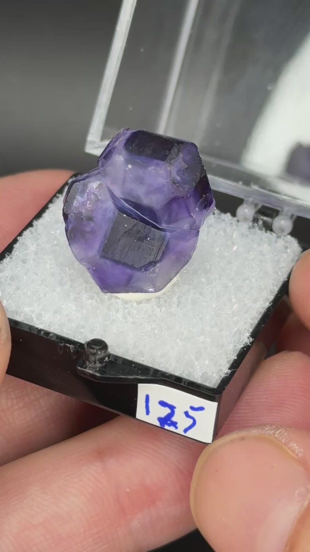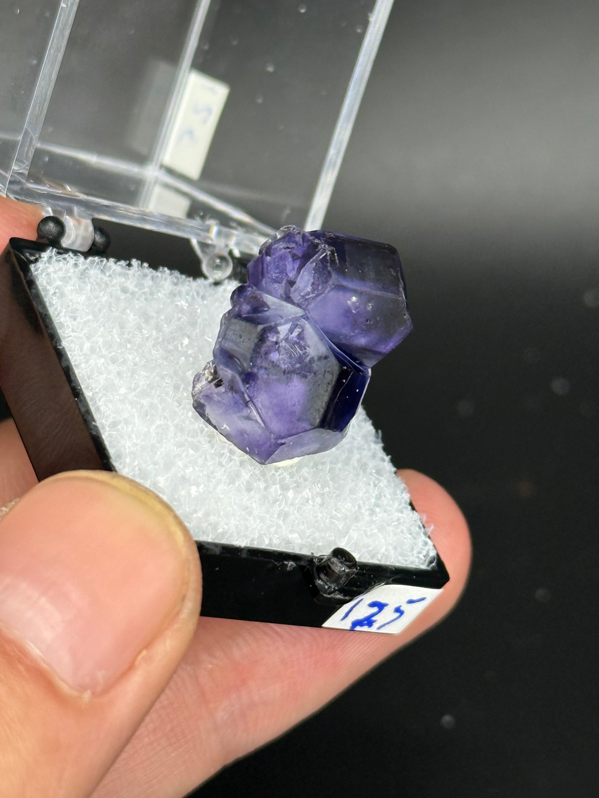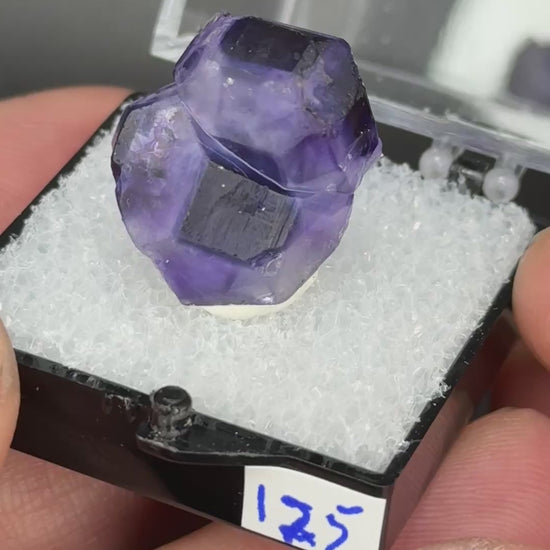 Fluorite from a recent find in Argentina. Open purple color crystals with great transparency and square blue color zones