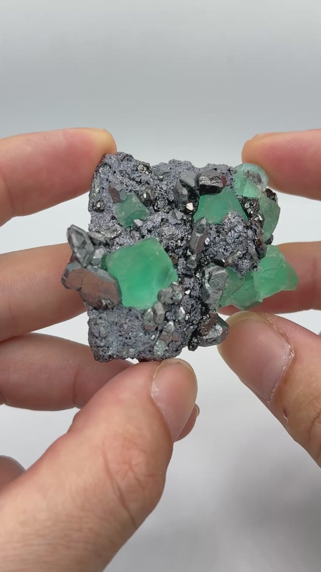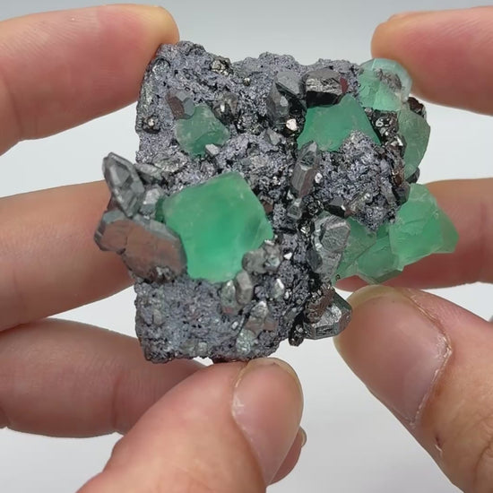 Fluorite on geocronite with galena and sphalerite crystals. Nice matrix specimen