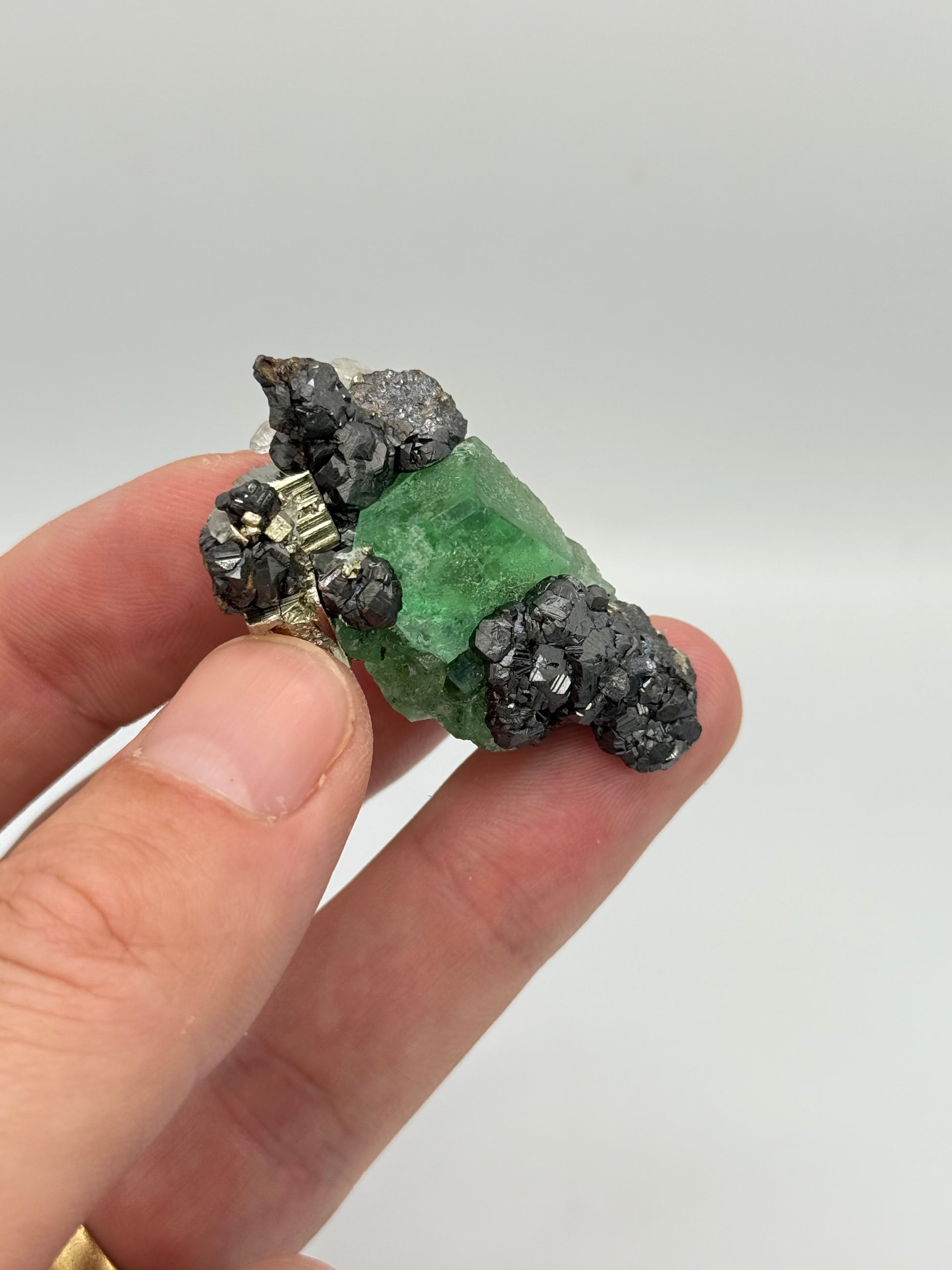 Fluorite with geocronite and pyrite. Nice combo with good contrast
