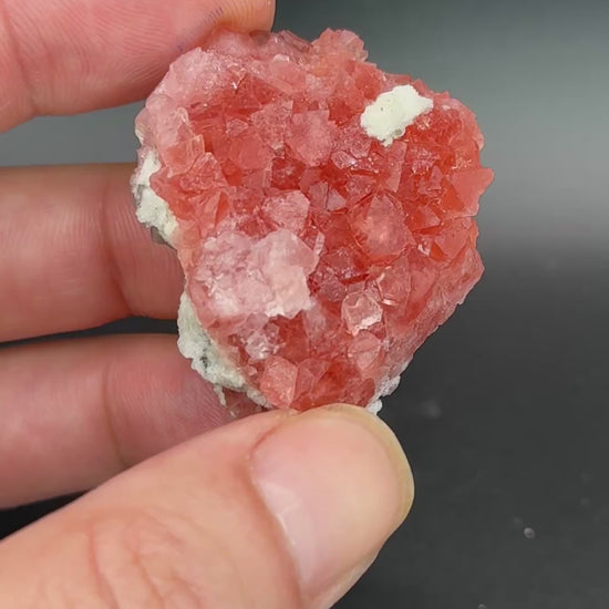 Excellent quality red fluorite on matrix from Point Kurtz. Lots of gemmy smaller size octahedrons coat the matrix, the color really pops! This quality of red fluorite is very uncommon and sought after by alpine collectors. From the 2011 find.