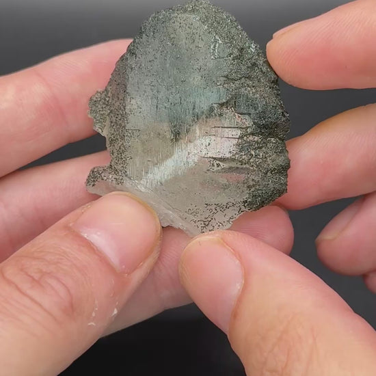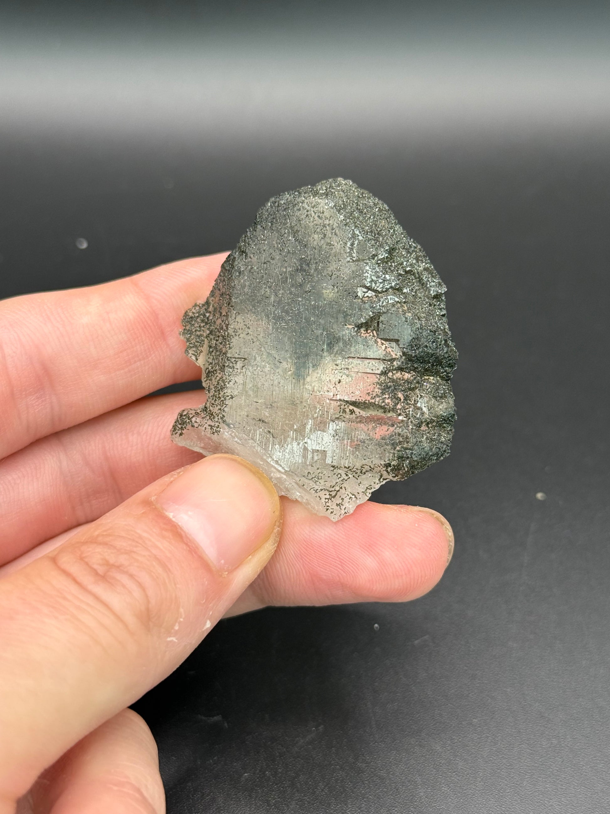 Clear quartz Gwindel with lustrous chlorite coating the terminations, nice pronounced twist.