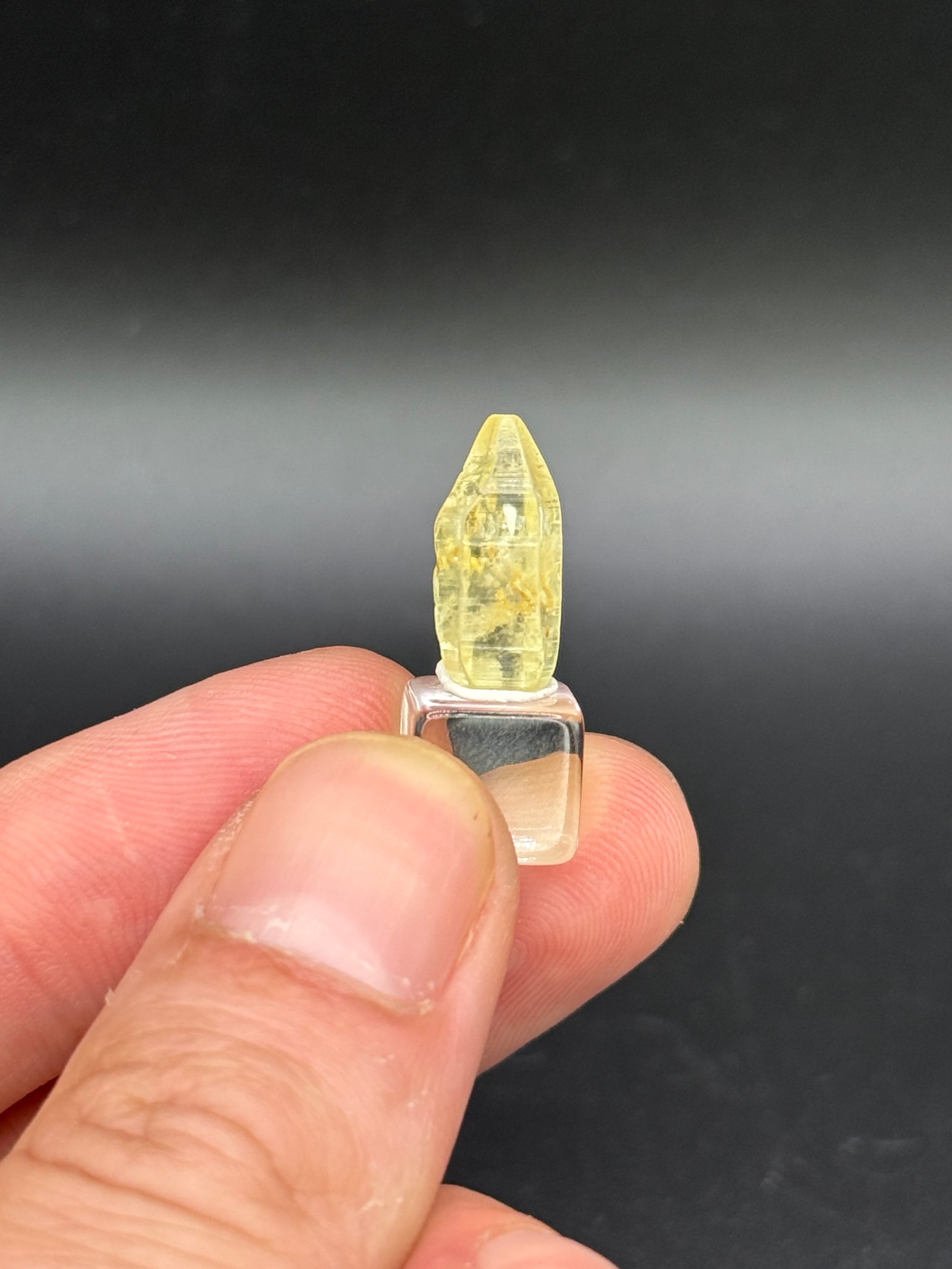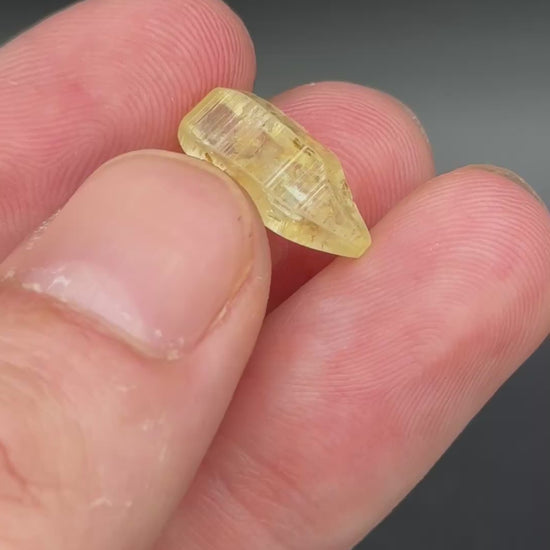 Double terminated natural no heat yellow sapphire. Great luster and shape with bright color and very sharply formed.