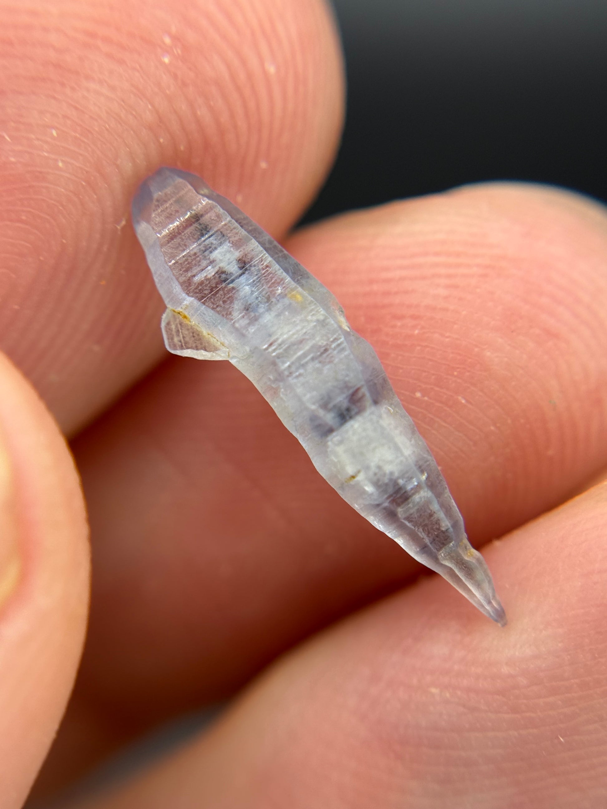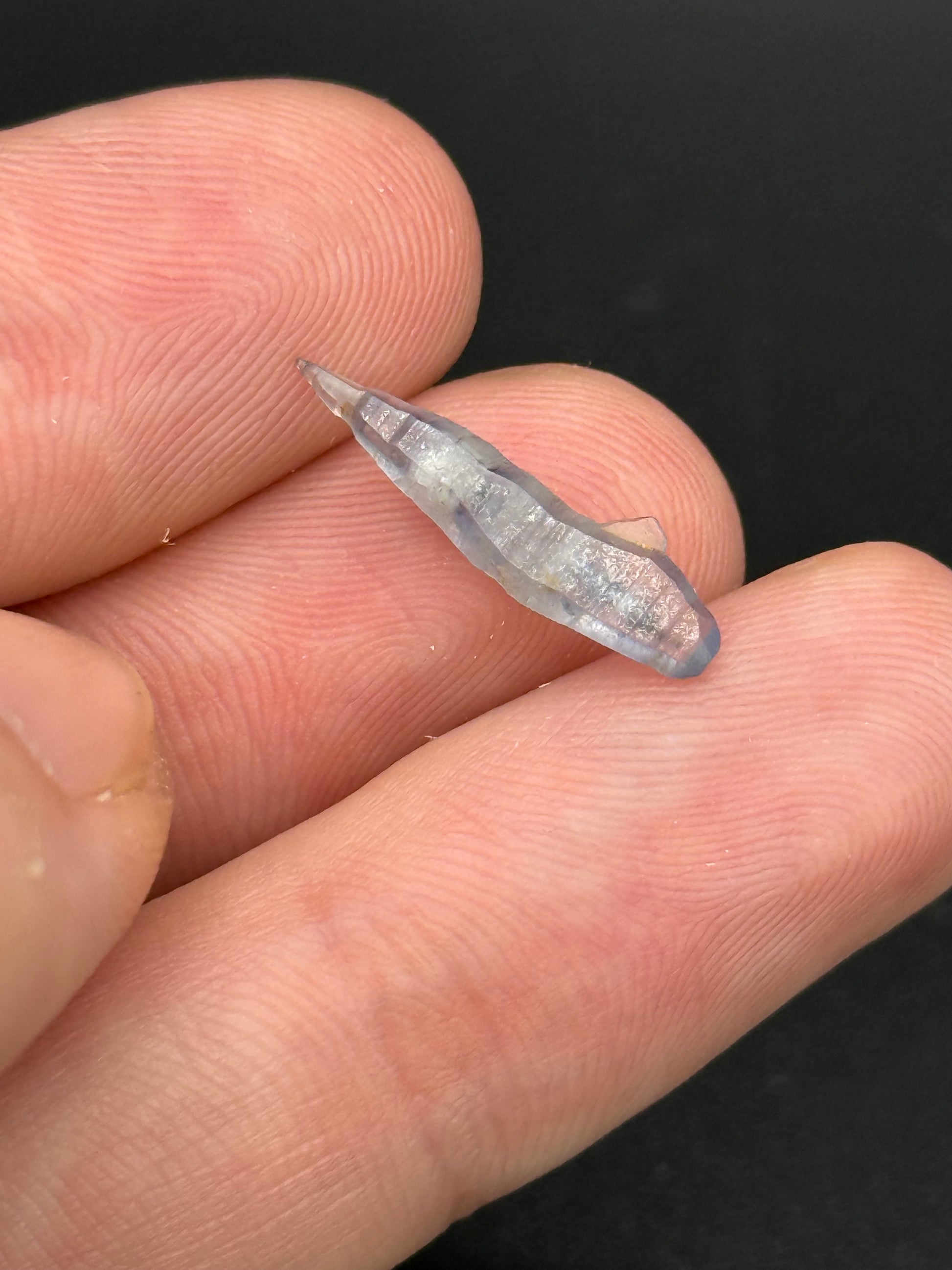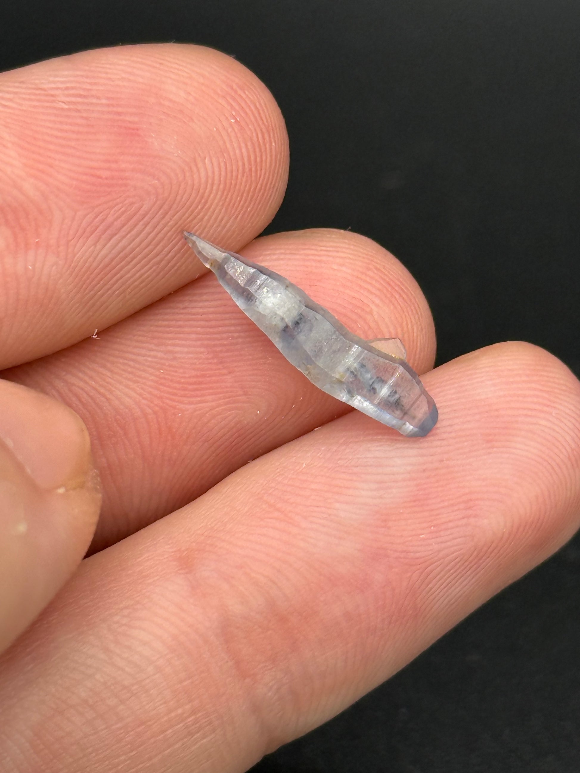 Sapphire natural no heat crystal with a great elongated thin shape and soft blue color. The crystal exhibits nice twinning.